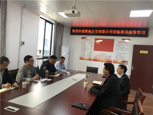 4月19日,淮南市公共交通有限責任公司總經理黃國軍一行蒞臨公交公司考察學習,縣道路運輸管理服務中心副主任胡咸衛(wèi),公司執(zhí)行董事張華以及相關科室負責人參加座談。